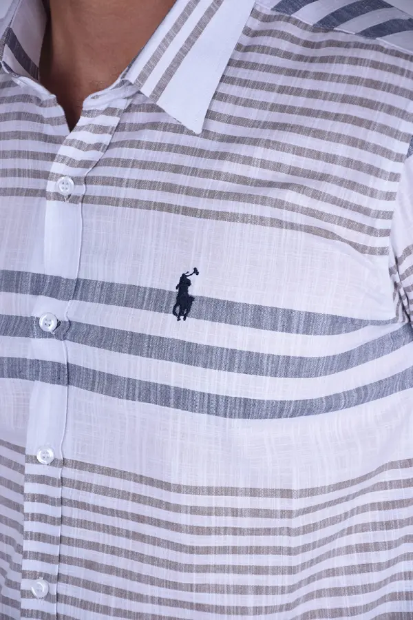 chemise Ralph lauren en Pur Lin Rayé demi manche Ref-RY0161X (Beige & Gris )