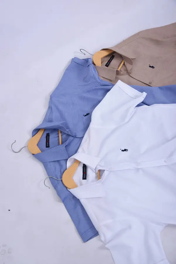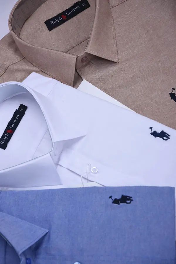 pack de 3 chemises Ralph lauren Oxford demi manche Ref-PCK21881 ( Blanche + Beige + Bleu roi )