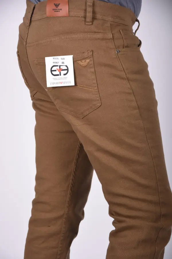 Pantalon en Toile Piqué Armani Coupe droite – Marron-ref-465